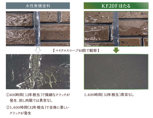 しかし、「KF20Fほたる」はその水性無機塗料を遥かに凌ぐ耐久性があることが分かります。